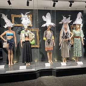 Anlässlich der Kunst- und Einkaufsnacht am 21.6.24 hat der Leistungskurs Bildende Künste des Albert-Einstein-Gymnasiums unser Schaufenster dekoriert. Das Thema war „Hut-Kunst aus Papier“. Wir waren begeistert. Ebenso die Schüler, die auch die passende Kleidung für die Puppen aus unserem Sortiment ausgesucht haben.