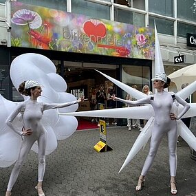 Ein „Walking Act“ hatte das Kulturamt der Stadt anläßlich der Kunstnacht beigesteuert. Wir stellten den Damen die Umkleide zur Verfügung. Zunächst waren wir verwundert, dass ein großer Raum gewünscht war. Erst als wir die fulminanten Kostüme live gesehen haben, wussten wir warum :) Die Damen waren begeistert. Sie waren heiß begehrtes Foto-Motiv.